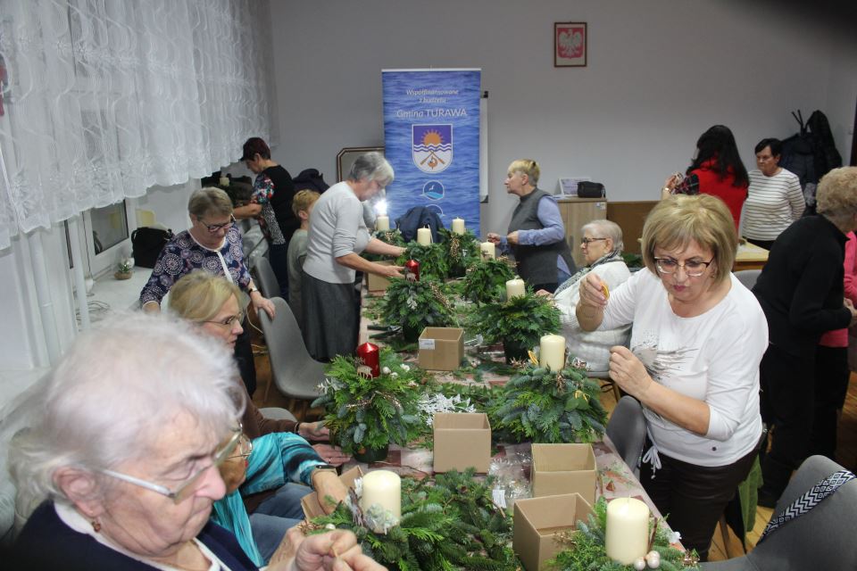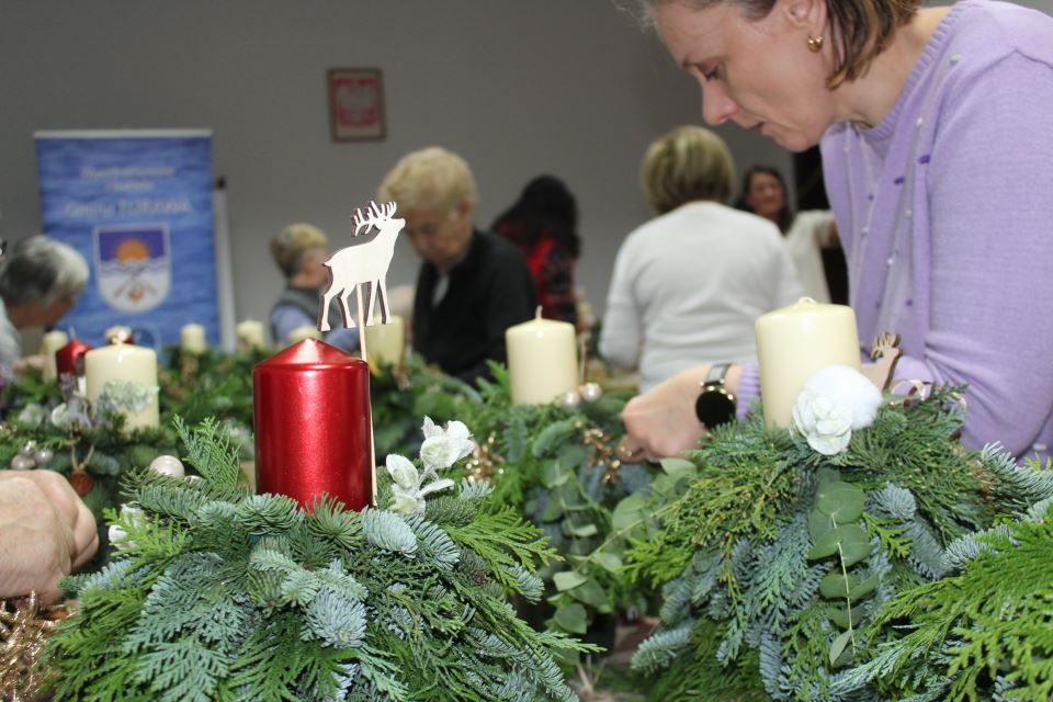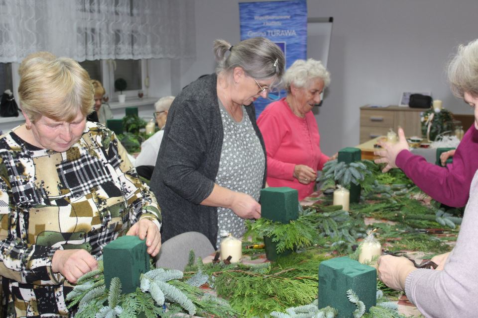 Warsztaty odbyły się w kolejnych miejscowościach naszej gminy — Węgrach, Ligocie Turawskiej, Kadłubie Turawskim, a finałowy warsztat miał miejsce 4 grudnia w Kotorzu Małym U Floriana. Uczestnicy mieli możliwość stworzenia tradycyjnych stroików i dekoracji adwentowych, poznając przy tym ich symbolikę oraz związane z nimi zwyczaje.