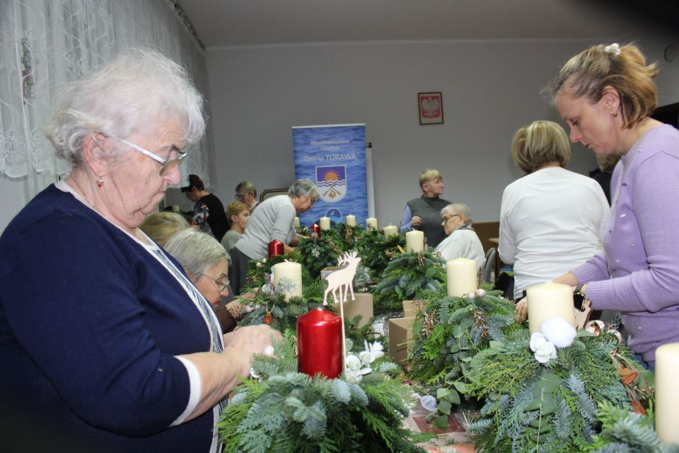 Warsztaty odbyły się w kolejnych miejscowościach naszej gminy — Węgrach, Ligocie Turawskiej, Kadłubie Turawskim, a finałowy warsztat miał miejsce 4 grudnia w Kotorzu Małym U Floriana. Uczestnicy mieli możliwość stworzenia tradycyjnych stroików i dekoracji adwentowych, poznając przy tym ich symbolikę oraz związane z nimi zwyczaje.